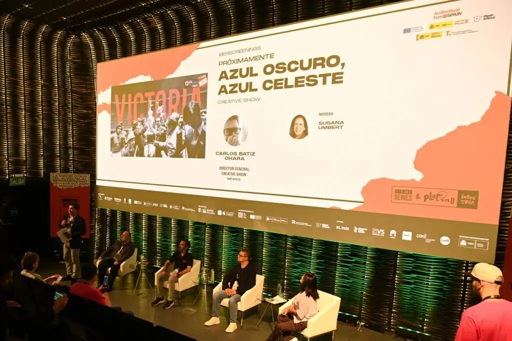 En la sección Próximamente de Iberscreenings se presentó un adelanto de Azul oscuro, azul celeste, serie documental que relata la extraordinaria historia de la cooperativa más importante de América Latina, el nacimiento de uno de los equipos de futbol más grande del país y la épica lucha de los socios trabajadores por recuperar el control de la empresa que ha sido saqueada a lo largo de 32 años por la familia Álvarez. Un proyecto dirigido por Carlos Carrera, director (El crimen del Padre Amaro, 2002) y Carlos Bátiz, quien acudió a promocionar la serie, en una sesión moderada por Susana Umbert (Latina Televisión).